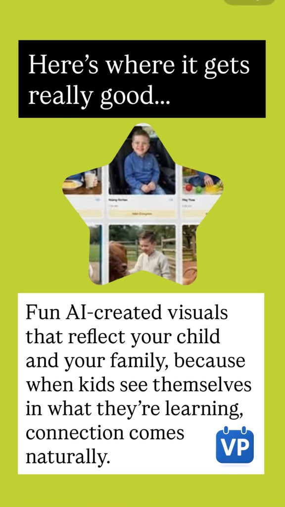Even better, their AI-generated visuals can look like your child and your family, helping create meaningful connection and understanding.